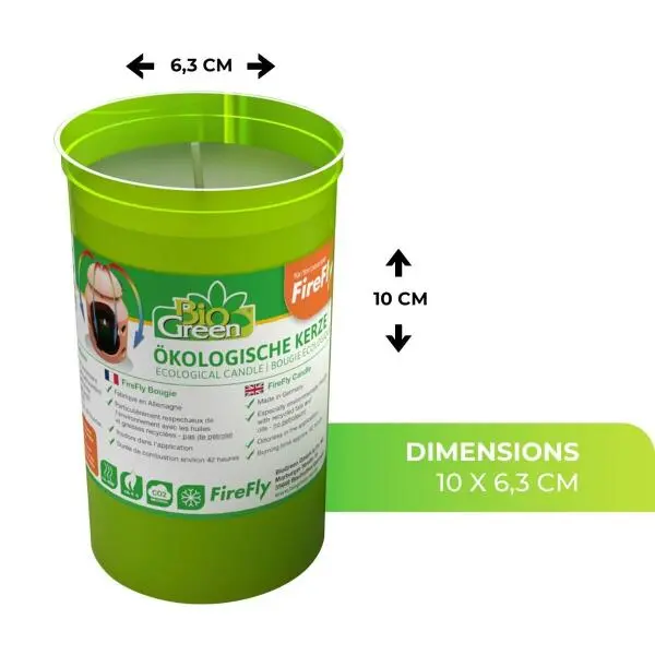 Deze ecologische kaarsen van Bio Green zijn gemaakt uit biomassa. Het is een milieuvriendelijk en duurzaam alternatief voor kerosine en stearine. Voor de productie van deze kaarsen wordt geen petroleum gebruikt en wordt het regenwoud niet aangetast. Er worden ook geen grondstoffen gebruikt die als voedsel of diervoeder zouden kunnen dienen zodat kostbare grondstoffen worden bespaard.