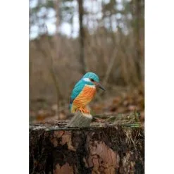 Ambachtelijk vormgegeven houten ijsvogel. De ijsvogel wordt op ware grootte weergegeven en is beschilderd met milieuvriendelijke verf.