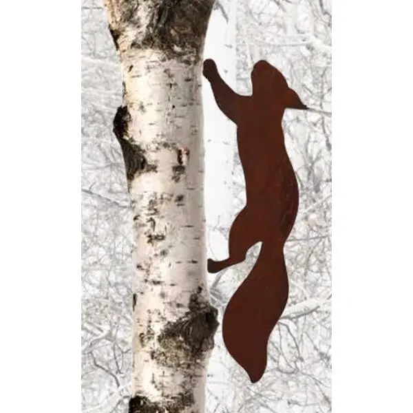 Met dit eekhoorn silhouet lijkt het net alsof er een echte eekhoorn in jouw boom klimt. Deze tuindecoratie is gemaakt uit speciaal gevormd en behandeld metaal met een roestige look. Dankzij 2 pinnen zet je de eekhoornvast in een boomstam, houten schutting of in een paal.