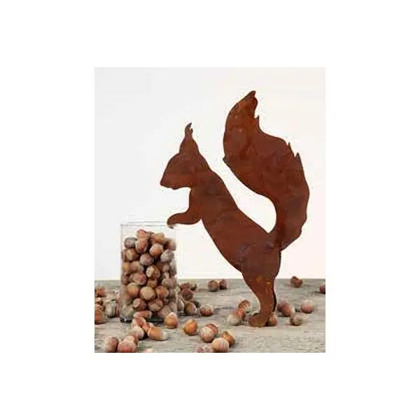 De eekhoorn is gemaakt uit speciaal gevormd en behandeld metaal met een roestige look. In combinatie met een vaas of pot gevuld met noten, dennenappels of andere decoratieve elementen is dit een speelse aanvulling voor het interieur of tuin.
