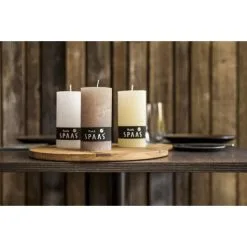 Deze gele kaars heeft een leuke betonnen houder die nadien nog gebruikt kan worden als theelichthouder of als kleine bloempot.