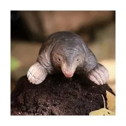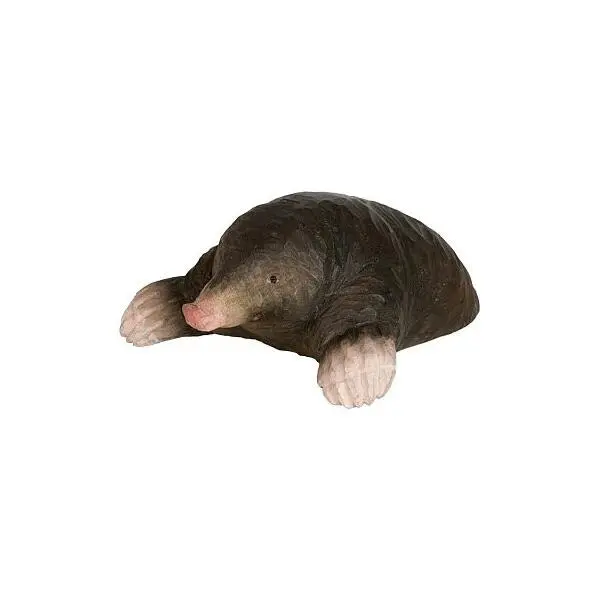 Ambachtelijk vormgegeven houten Europese mol (Talpa europaea). Dit beeld van een nieuwsgierige mol is beschilderd met milieuvriendelijke verf.