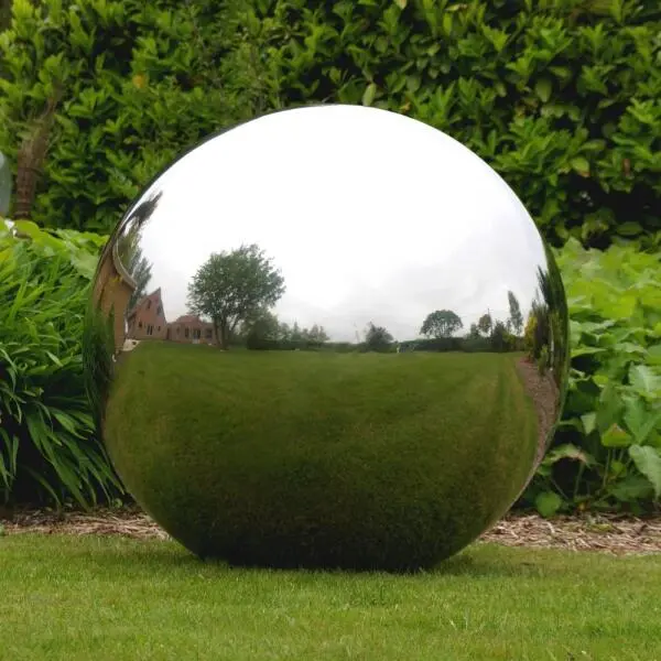 Decoratieve heksen- of spiegelbol van gepolijst roestvast staal, ook RVS of inox genoemd blijft kleurvast / verkleurt niet na verloop van tijd. Door de ronde vorm weerspiegelt zich het gehele tuinpanorama in de bol. Het houdt reigers door de weerkaatsing op een afstand van je vissen.