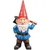 Hang de kabouter op in de tuin aan een boom, struik of muurhaak zodat hij zachtjes kan schommelen in de wind. Ook in het interieur kan hij voor sfeer en gezelligheid zorgen. Het beeld is gemaakt van polyresin, een duurzame kunsthars.
