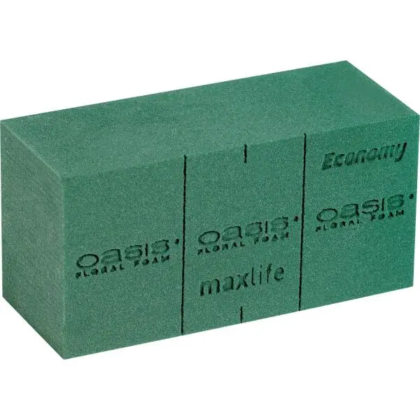 OASIS steekschuim ‘Economy‘ voor het maken van bloem-, trouw- en kerststukken. Ideaal voor het insteken van echte snijbloemen. De blok is makkelijk in twee of drie gelijke delen te versnijden dankzij de zichtbare snijlijnen.