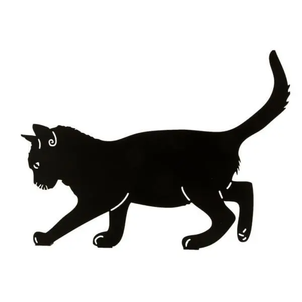 Ludiek en decoratief silhouet van een balancerende kat. Het silhouet is vervaardigd uit metaal bewerkt met een roestwerende, milieuvriendelijke zwarte verf.