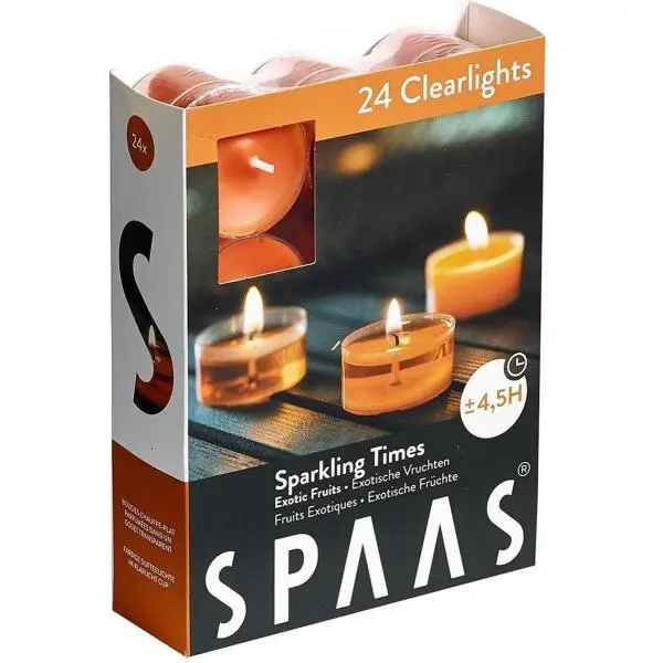 De claerlights van Spaas zijn de ultieme sfeerbrengers met een heel chic effect. De transparante cups zien er uit als stroperige snoepjes. In combinatie met een heerlijk aroma zorgen ze voor de juiste sfeer, op het juiste moment.