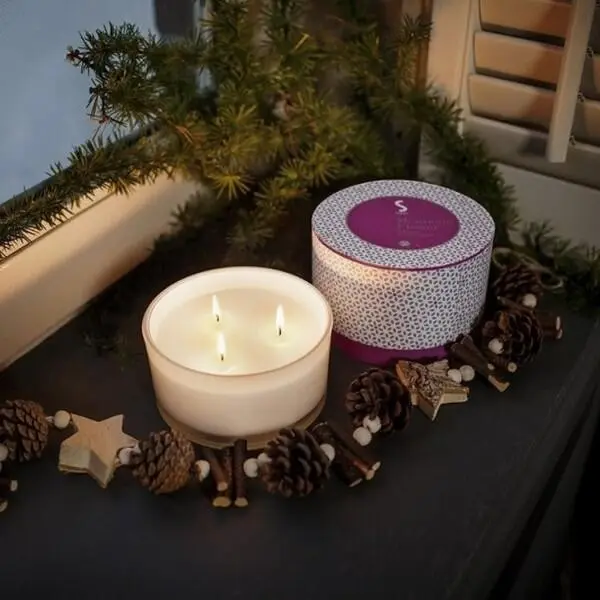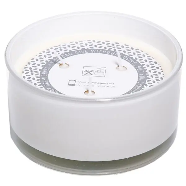 De kaars heeft drie wieken en zit in een stevig wit glas. De kaars komt in een roze met witte geschenkverpakking waardoor dit het ideale cadeau is.