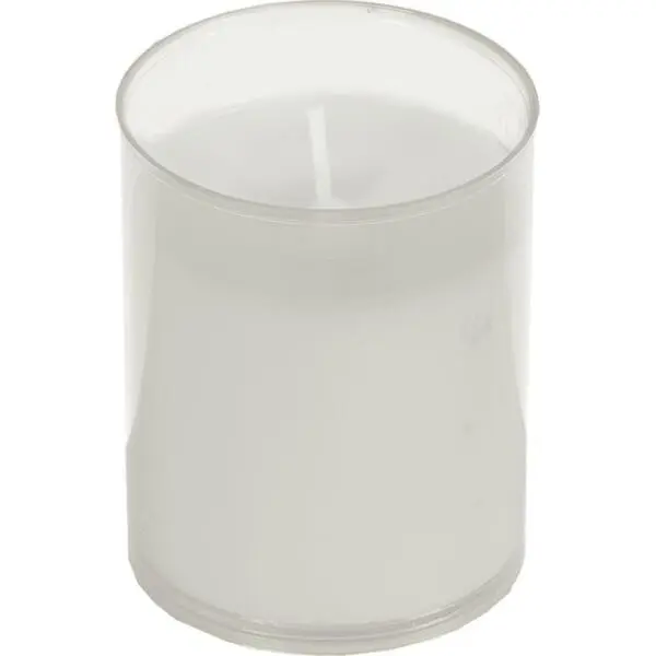 De kaarsen zitten in een transparant potje in kunststof en zijn geurloos.
