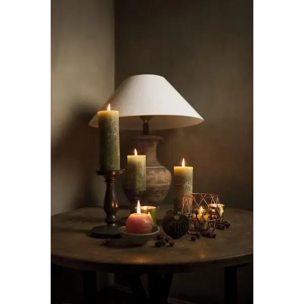 Een smalle maar lange cilinderkaars met een rustieke look. Verkrijgbaar in verschillende kleuren, voor elke interieur een passende tint. De kaars brandt maar liefst 95 uren. De rustieke kaars van hoge kwaliteit druipt en roet niet. Ze brandt netjes op en is zelfdovend.