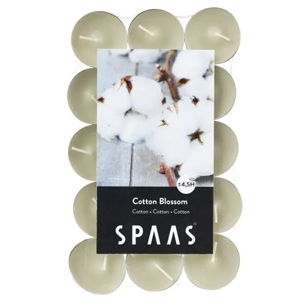 De theelichtjes met de geur van katoenbloesem doen je wegdromen van verre bestemmingen en brengen je tot rust.